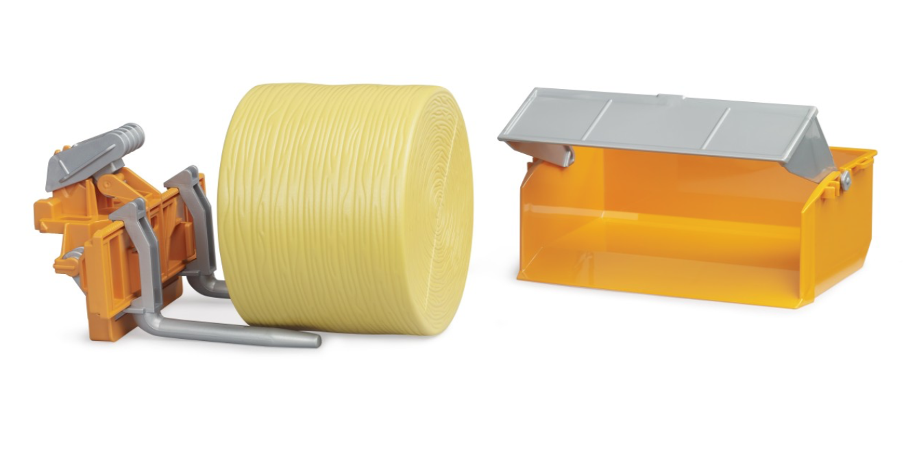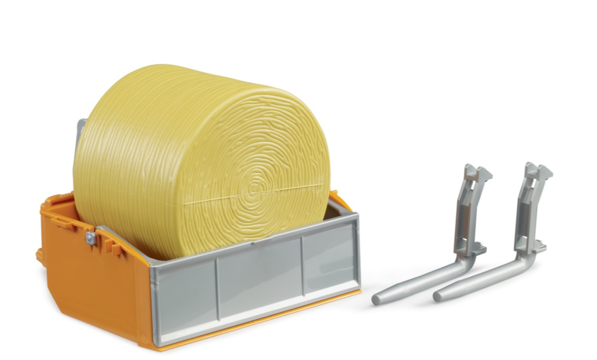 Für jeden Landwirt ist ein Ladekasten ein notwendiges und universelles Werkzeug, sind diese doch schnell an den Traktor montiert und vielseitig einsetzbar. Auch für die große Traktorenflotte von BRUDER gibt es neu dieses nützliche Anhängegerät. Der Ladekasten hat eine zu öffnende Heckklappe und ist auch komplett kippbar. Zusätzlich kann der Kasten abgenommen und Gabeln montiert werden, die für den Transport des mitgelieferten Rundballens benötigt werden.